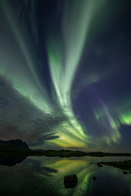 Lofoten is located just below the auroral oval, which provides the best conditions for seeing the Northern Lights. As soon as it gets dark, the Northern Lights can become visible, provided it is not cloudy. In cloudy weather, we will do our best to find an area with clear skies. The main season for the Northern Lights is between September and April. Our trips mainly go to the north side of Lofoten, where the absence of artificial light and a long horizon to the north provide the best conditions for seeing the Northern Lights.